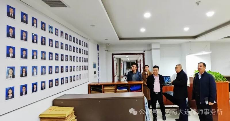 秋冬冷雨侵衣寒,上门交流座谈暖。11月18日下午,河南省保险中介行业协会副会长、河南松泰保险代理有限公司董事长、洛阳松泰汽车服务有限公司法定代表人赵孟勋,中华遗嘱库洛阳分中心负责人崔超,慕名到河南大进律师事务所进行参观、交流和座谈。