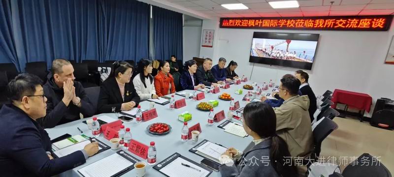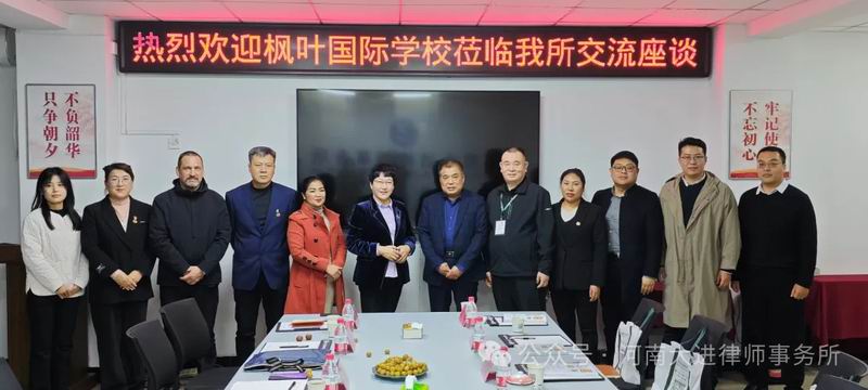 11月13日,洛阳枫叶双语学校总校长张春杰等12人访问大进律所,双方进行了友好交流。