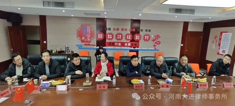 洛阳市汽车行业商会常务副会长李伟、赵治强和副会长牛海军、石玉川,东北商会法人程亚铭和副会长兼秘书长胡海龙、企业家施明月、潘明庭、陈雅洁,大进律所品牌总监罗晓,律师田建国、卢娉、赵加超、李政佐等参加了讨论。