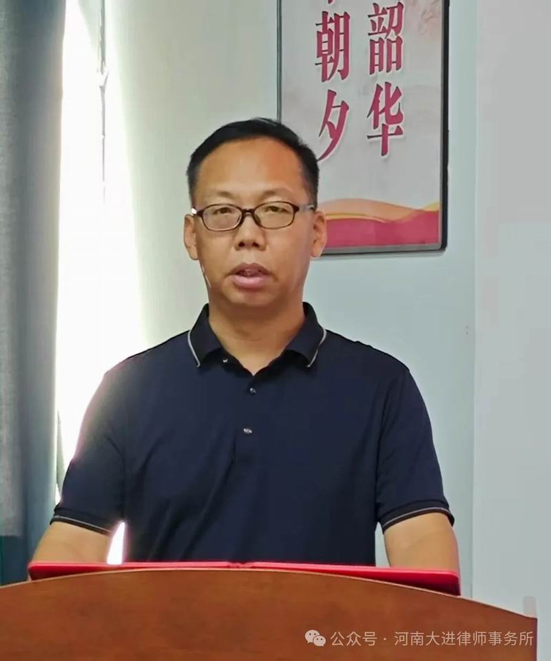接着,律所工会主席、副主任谢亮宣读《河南大进律师事务所2025年度师徒结对名册》。谢亮指出,律所的这份名册是责任的寄托,也是薪火相传的庄严承诺,承载着导师们的无私与担当,蕴含着新生力量的梦想与未来。他祝愿结对的师徒们:在今后的日子里亦师亦友,携手同行,共铸辉煌。