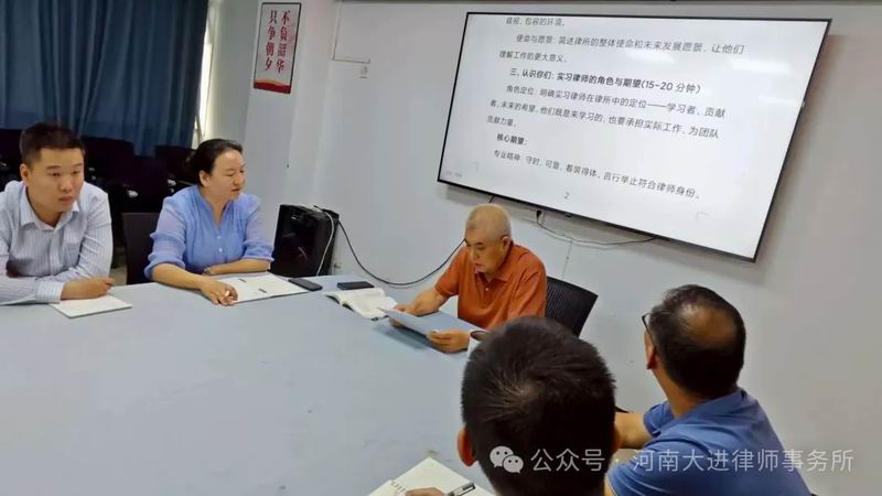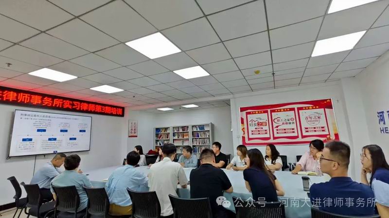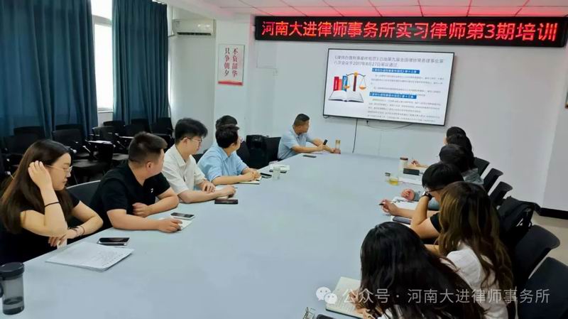8月15日,河南大进律师事务所举行2025年实习律师第二期培训。律所16名实习律师积极参与,更有部分刚执业的青年律师主动前来“充电”旁听,学习氛围十分浓厚。