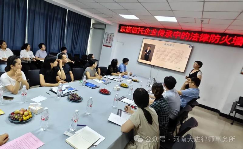 8月7日下午,“家族信托与企业传承防火墙沙龙”在河南大进律师事务所顺利举行。本次活动吸引了洛阳市社会组织联合会相关领导、益德家族办公室专家、我市优秀企业家代表及大进律所律师等20余位嘉宾齐聚一堂,共同探讨家族财富与企业基业长青之道。