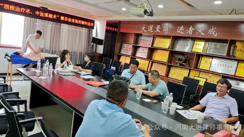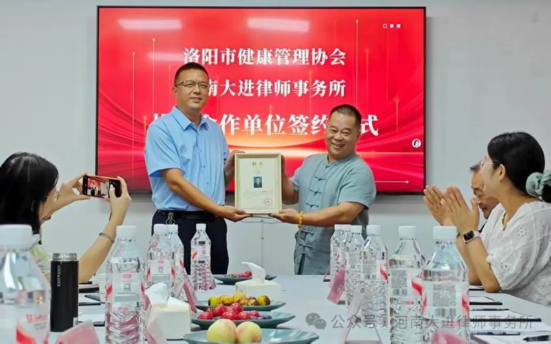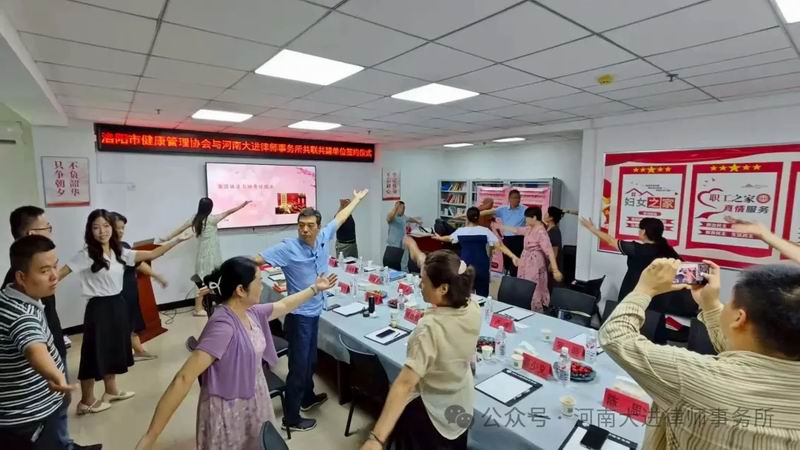 8月28日,为期一天的洛阳市健康管理协会与河南大进律师事务所共联共建活动取得圆满成功。活动期间,进行了现场参观、座谈交流、现场签约、专题讲座、颈椎调理及中医揉腹术展示和义诊沉浸式体验。大家认为,这种跨界融合发展模式实现专业共享、优势互补,开创了行业协作的新范式。