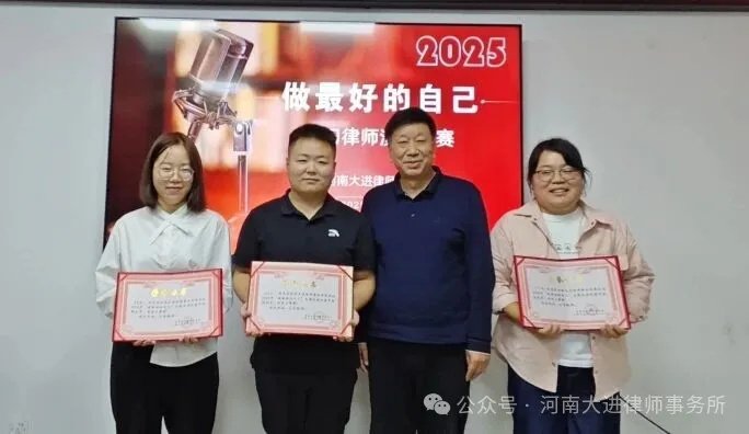 此次演讲比赛不仅为实习律师提供了展示与交流的平台,也进一步凝聚了“自我革新、追求卓越”的职业共识。未来,大进律师事务所将持续开展此类活动,为青年律师成长赋能,助力他们在法治道路上逐光而行、砺法成锋。