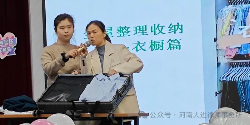 李玉春女士通过生动的讲解和实例演示,向大家展示了“两步到家”整理收纳的实用技巧。她告诉大家,整理收纳不仅是一种生活技能,更是一种健康的生活方式,能够提升生活质量、缓解压力、愉悦心情,并提高工作效率。她分享了行李箱收纳技巧、衣柜整理收纳技巧,并邀请现场老师上台实操演练,让参与者能够“手把手”地学习和掌握这些技巧。大家纷纷表示收获颇丰,这些技巧将在今后的生活中发挥大作用。