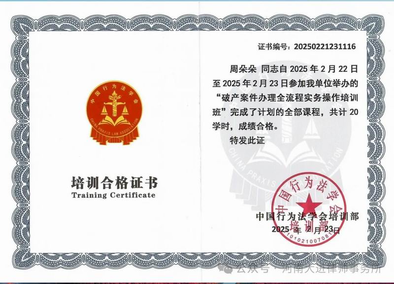河南大进律师事务所破产团队在此次培训中成果丰硕,不仅全面掌握了破产案件处理的全流程操作要点,还在破产重整、债权申报、债权人会议等关键环节实务操作中获得了新的洞见,有效提升了办理破产案件的专业水平。