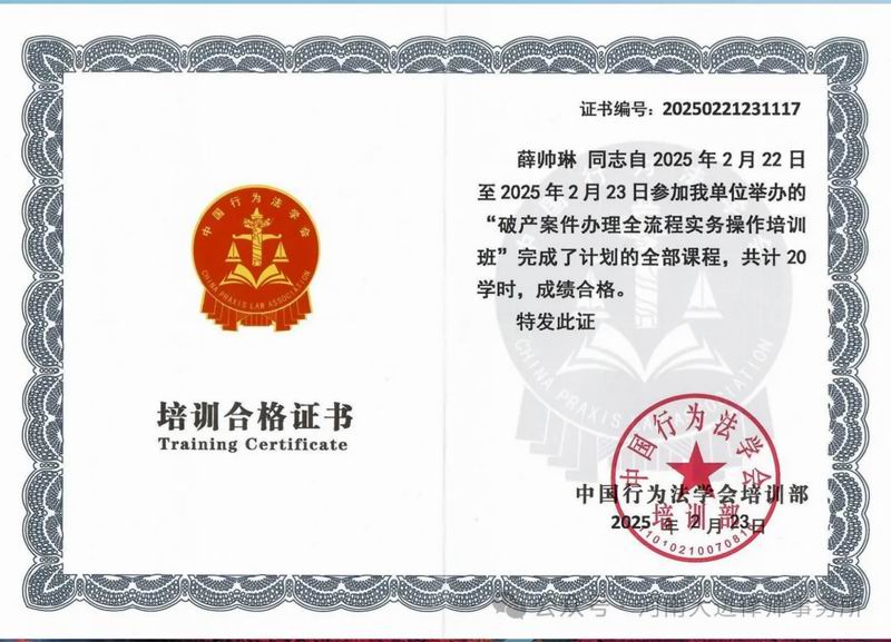 2月22日至23日,河南大进律师事务所派出破产专业律师团队刘建伟、周朵朵、梁玉、薛帅琳等,前往漯河参加由中国行为法学会主办的“破产案件办理全流程实务操作培训班”。