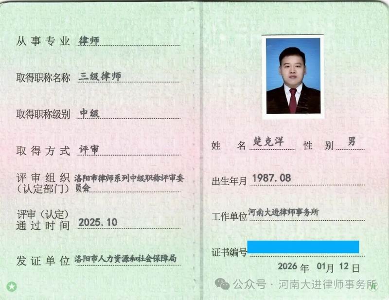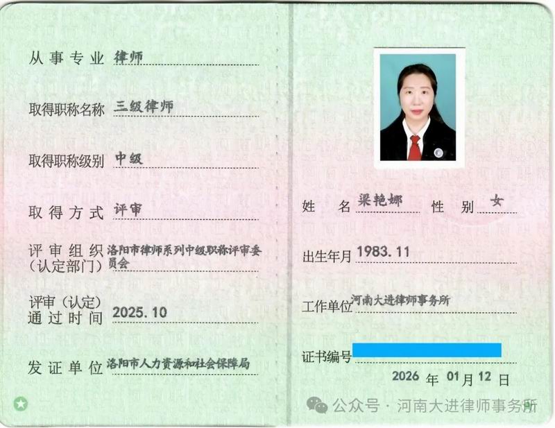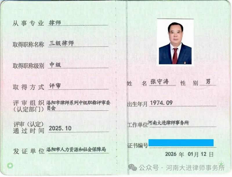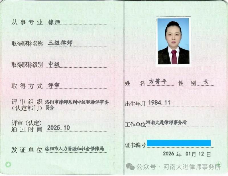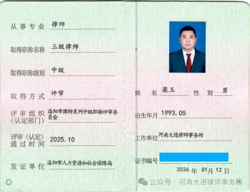 职称证书不仅是对五位律师个人业务水平的认可,也充分展示了河南大进律师事务所在专业化、规范化建设方面的持续努力与丰硕成果。