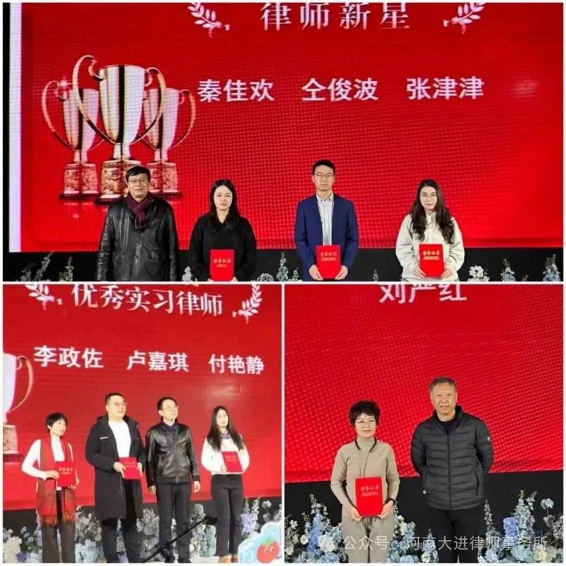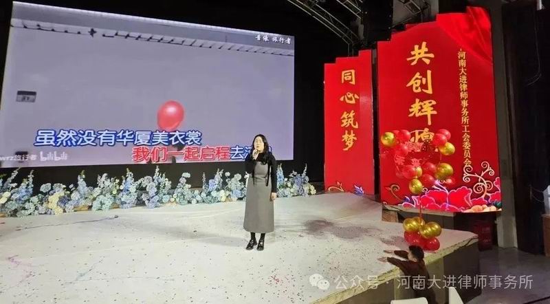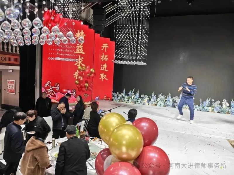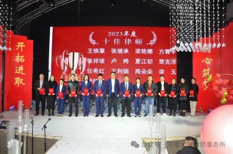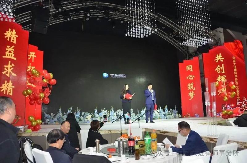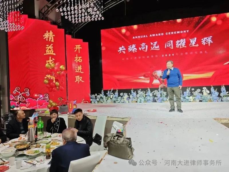 玉兔辞岁,金龙迎春。在这辞旧迎新的美好时刻,1月27日上午河南大进律师事务所2024“共臻高远,同耀星辉”迎新年会暨颁奖典礼在幸福礼堂酒店梦幻厅隆重举行。本次年会由河南大进律师事务所工会牵头组织,130多名大进人及家属、战略合作单位代表等,喜气洋洋、欢聚一堂,共赏该所首次自编自导自演的文艺节目,共襄律所发展盛事。