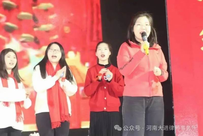 临近活动结束,大进律所党支部书记、主任左鑫登台发表感言,他说这是我所第一次自编自导自演联欢会,虽然我们不专业,但体现了热烈、祥和的气氛,特别是各团队为了把最美好呈现给大家,加班加点,认真排练,体现了团体意识,集体观念,我们是一支能打硬仗的队伍,对大家的付出表示感谢。最后,他演唱了流行歌曲《北国之春》,合唱了流行歌曲《祈祷》,带动了全场互动氛围,现场掌声此起彼伏。