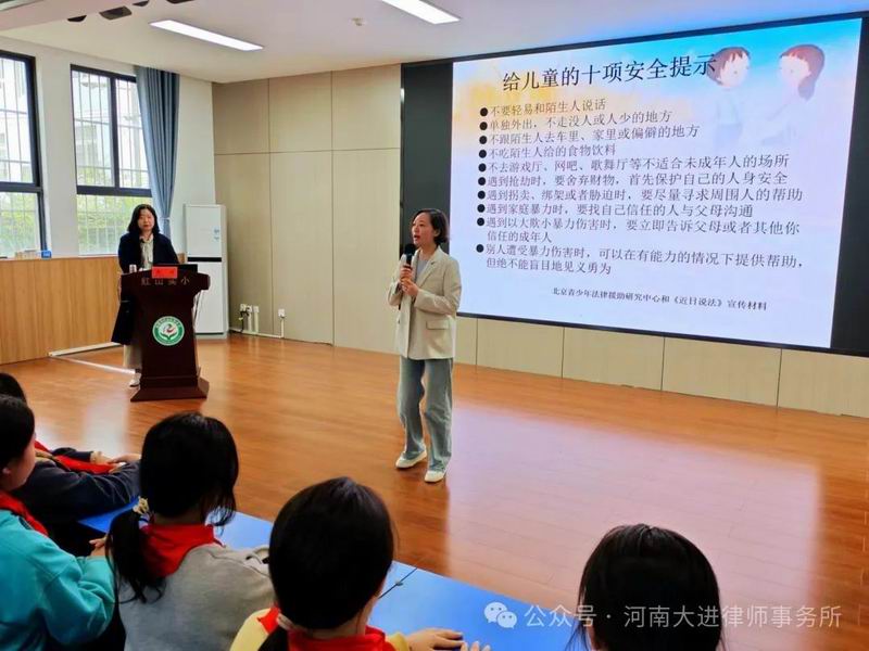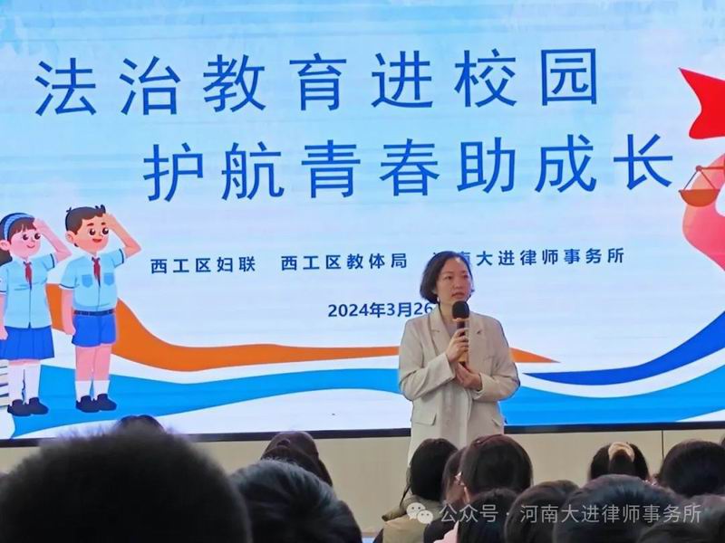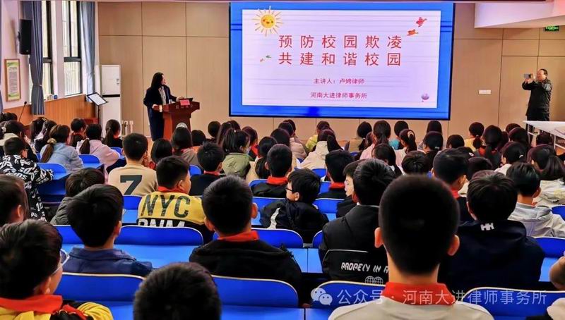 “对校园欺凌说不,让阳光驱散不法侵害阴霾,扫除校园毒瘤,这是全社会的共同责任与使命!”3月26日下午,西工区妇联、西工区教体局和河南大进律师事务所在洛阳市红山实验小学教育集团开展“法治教育进校园,领航青春护成长”法治主题活动,卢娉律师为集团4所小学、1300余名师生送上“干货满满”的预防校园欺凌、反性侵害专题讲座,向社会发出不做沉默“小绵羊”,预防校园欺凌,共建和谐校园的铿锵声音。