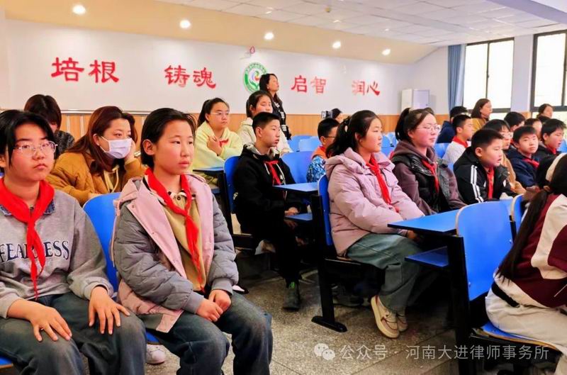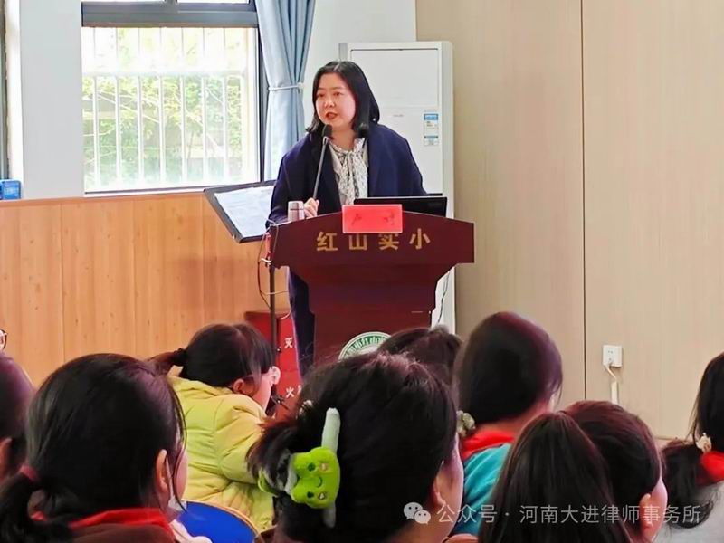 活动仪式由洛阳市红山实验小学教育集团党支部副书记海霞主持。她代表该教育集团,感谢西工区妇联、西工区教体局和河南大进律师事务所对本次法治主题活动的重视和大力支持,希望通过本次活动,增强师生对校园欺凌社会问题的重视,一旦遭遇不法侵害要坚决抵制,敢于勇敢地拿起法律武器保护自身合法权益,用法律守护成长净土。