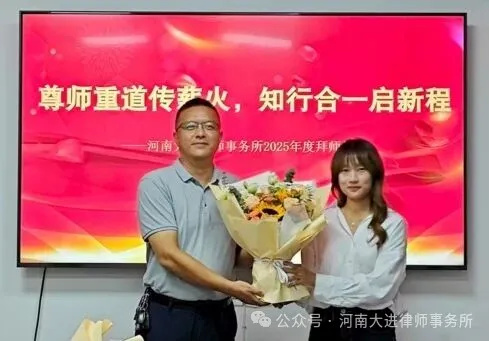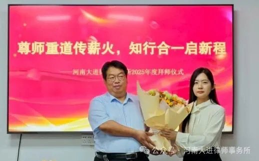 金秋如画,叠翠流金。在第41个教师节到来前夕,河南大进律师事务所举办以“尊师重道传薪火,知行合一启新程”为主题的2025年度拜师仪式。仪式通过庄重的传统礼仪与务实的经验传承环节,搭建起资深律师与实习律师间的“传帮带”桥梁,为法律行业人才梯队建设注入新活力。这种将传统礼仪与现代人才培养结合的实践,为探索律所“老带新”机制提供了鲜活样本。