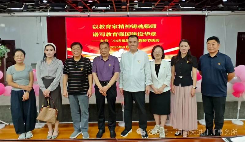 9月10日上午,洛阳市东升二小隆重举行第41个教师节庆祝活动。河南大进律师事务所作为共联共建单位参与本次活动。活动中,学校新操场正式启用,并首次颁发“大进助教奖”。我所党支部书记、主任左鑫受聘为该校名誉校长。
