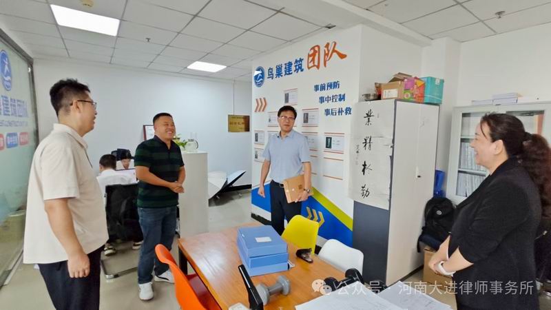 9月16日,洛阳市律师协会副会长、北京盈科(洛阳)律师事务所党支部书记刘伟带领相关人员,走进河南大进律师事务所参观、交流。大进律所党支部书记、主任左鑫,执行主任刘路,副主任杨综治,品牌总监罗晓热情接待了刘伟一行。