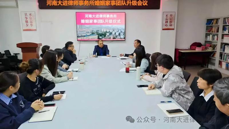 9月23日,河南大进律师事务所隆重举行团队升级扩容仪式。律所通过完善内部建制、优化人员结构,全面强化专业服务能力,实现对家事法律服务领域的精耕细作。