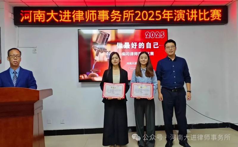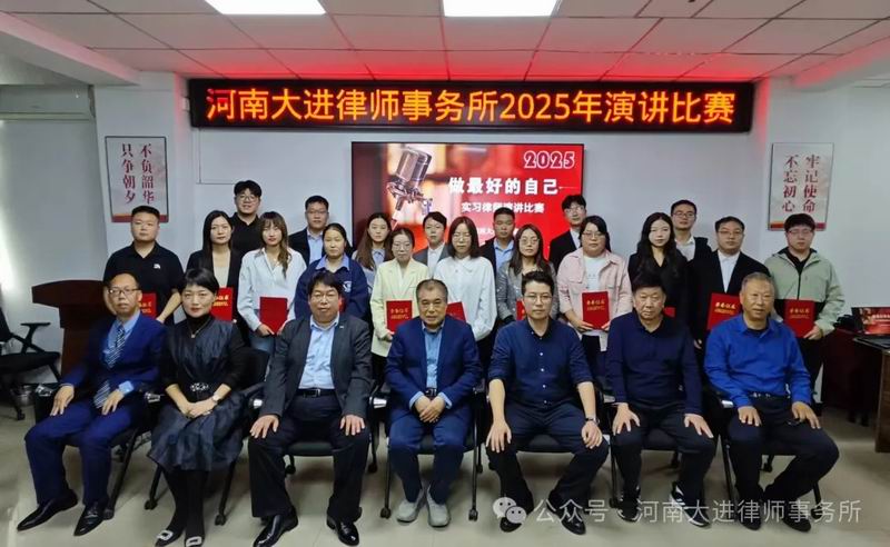 9月28日,河南大进律师事务所举行主题为“做最好的自己”实习律师演讲比赛。18名实习律师结合学习体会与实习经历,畅谈对成长与专业的理解,抒发理想信念,表达了未来争做“党和人民满意的好律师”的坚定志向。此次演讲比赛不仅为实习律师提供了展示与交流的平台,也进一步凝聚了“自我革新、追求卓越”的职业共识。