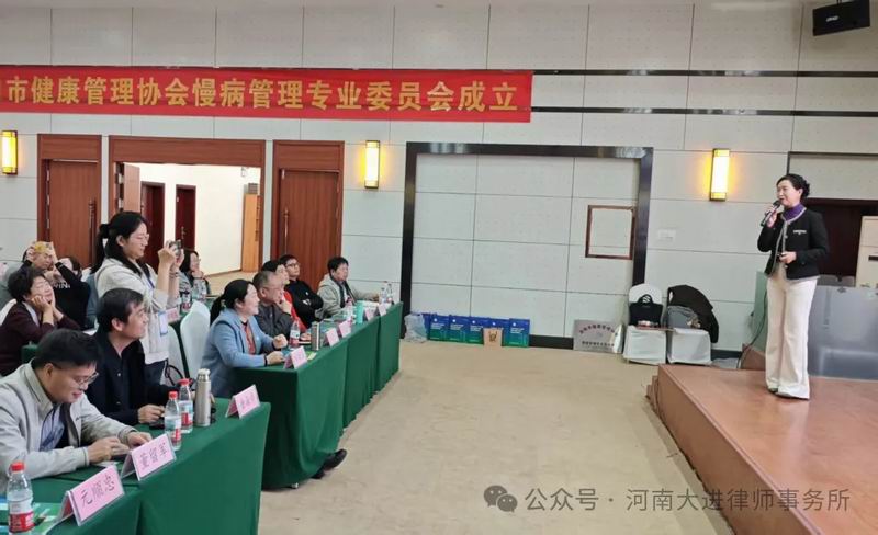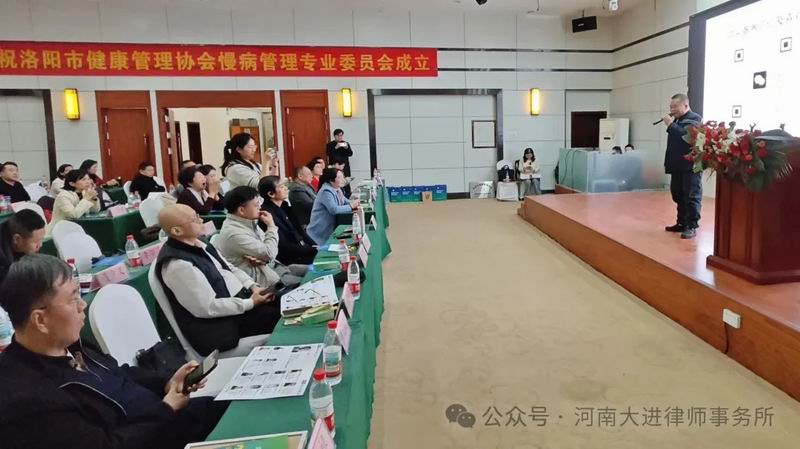 洛阳市健康管理协会2025健康大讲堂第一期暨慢病管理专业委成立仪式,近日在洛阳龙门西山宾馆举行。河南大进律师事务所作为协会副会长单位,组织律师团队参加活动,与协会、分会领导和企业家进行了沟通交流,就近期的律师团队走进社区、企业开展公益普法、读书会活动,进行了友好商洽并达成一致意见。